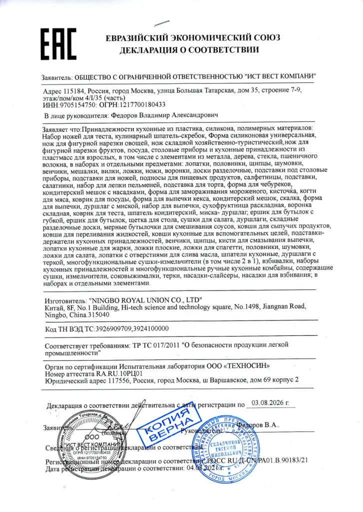СКАЧАТЬ ДЕКЛАРАЦИЮ О СООТВЕТСТВИИ