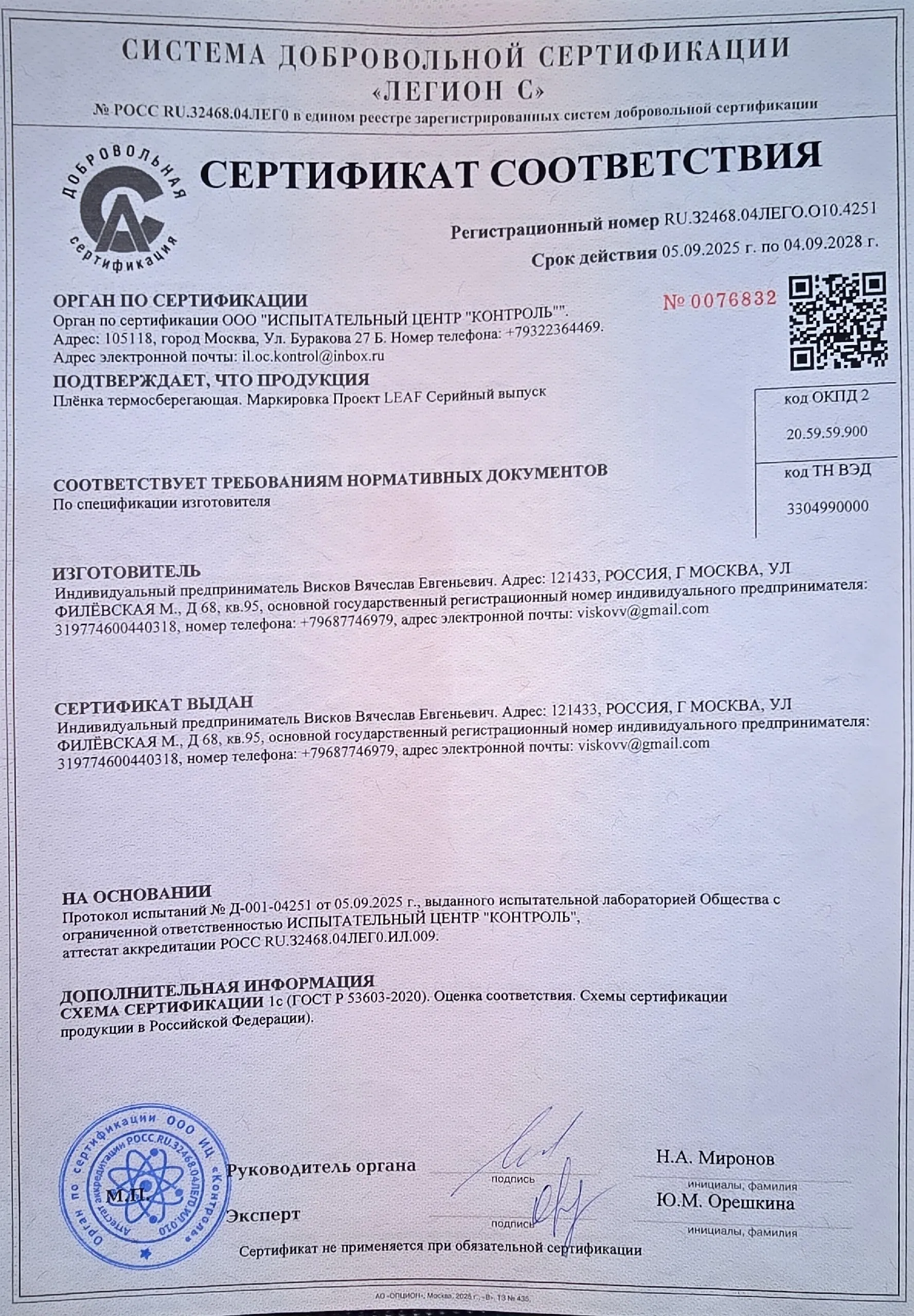 • Рег. номер: RU.32468.04ЛЕГО.О10.4251 (Система добровольной сертификации «ЛЕГИОН С»).