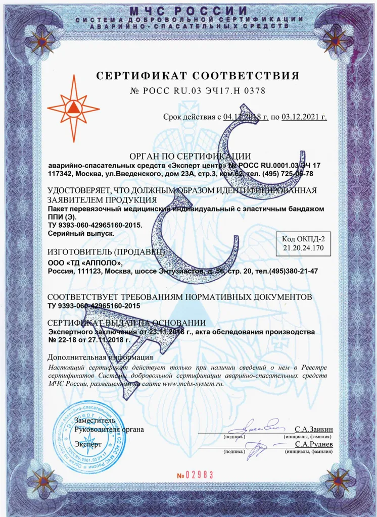 Предназначен для оказания первой само- и взаимопомощи пострадавшим в несчастных случаях, техногенных авариях и других экстремальных ситуациях, в том числе в ходе военных действий.